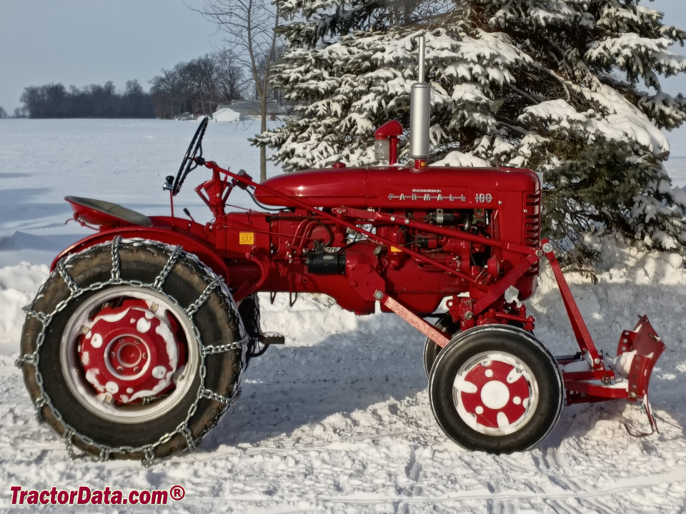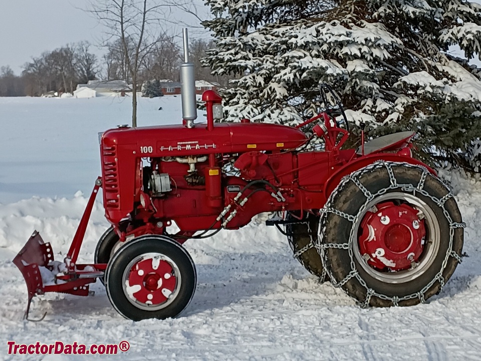 Farmall 100 with front-mounted blade. (2 images)