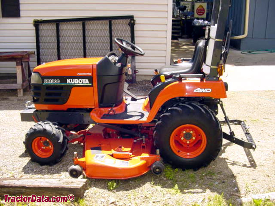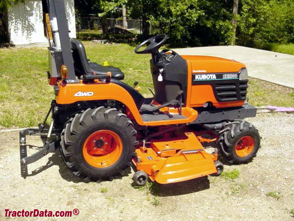 Kubota BX1800 compact utility tractor with mower deck. (5 images)